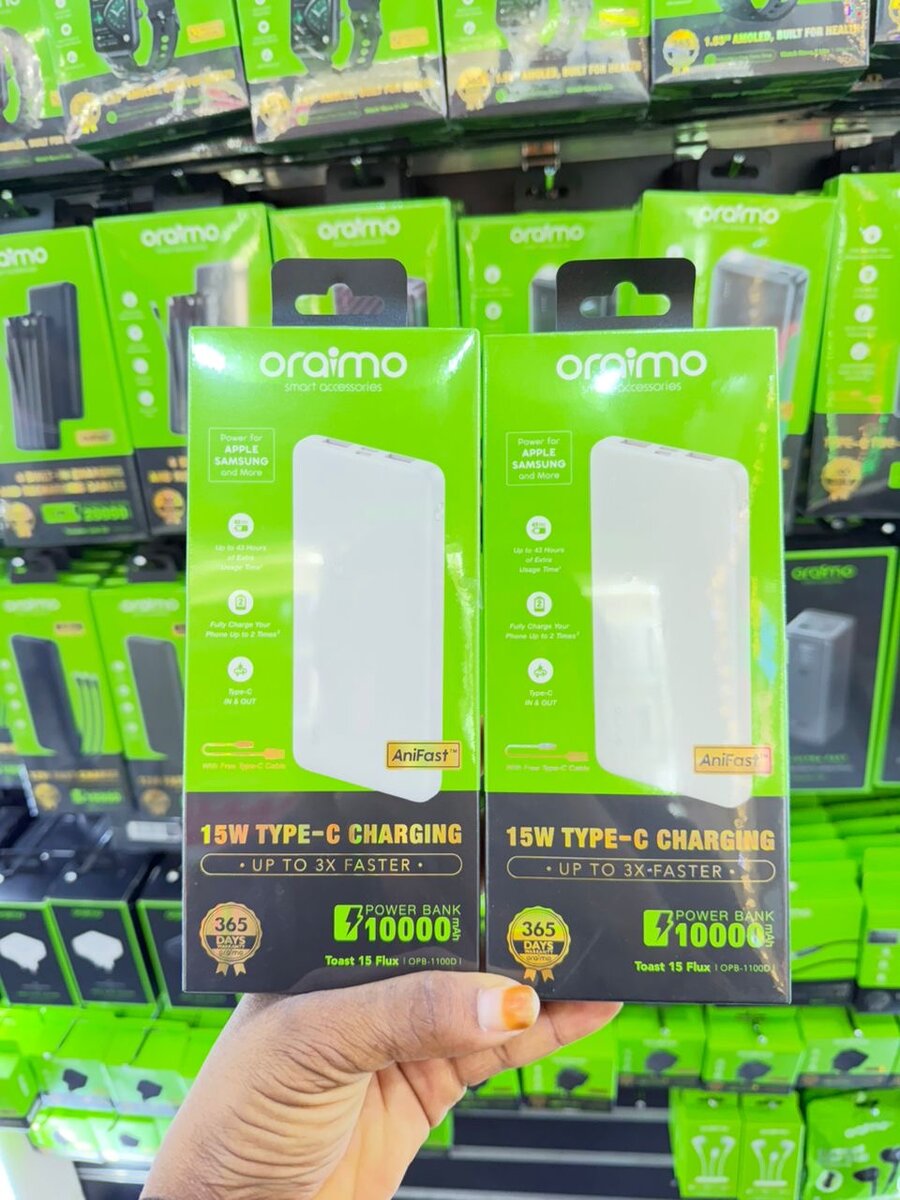 Optez pour le chargeur portable Oraimo de 10000mAh avec chargement rapide 15W. Idéal pour maintenir vos appareils alimentés partout. Compact, léger et compatible Type-C. Parfait pour les voyages et déplacements.