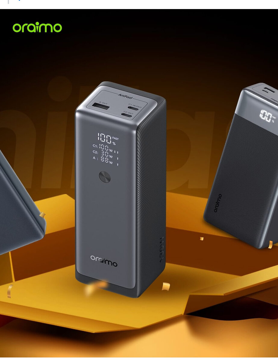 Puissante batterie externe Oraimo de 30000mAh, idéale pour recharger vos appareils rapidement et plusieurs fois. Avec écran numérique, port USB-C et design élégant, parfait pour les voyages ou l'utilisation quotidienne.