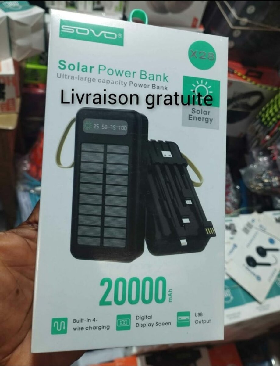 Équipez-vous de la puissante banque d'énergie solaire Sovo 20000mAh, idéale pour recharger vos appareils en déplacement. Dotée d'un écran digital et de la capacité de charge sans fil, elle est parfaite pour les voyages et les aventures en plein air. Offrez à vos appareils une puissance ininterrompue, même sans prise électrique.