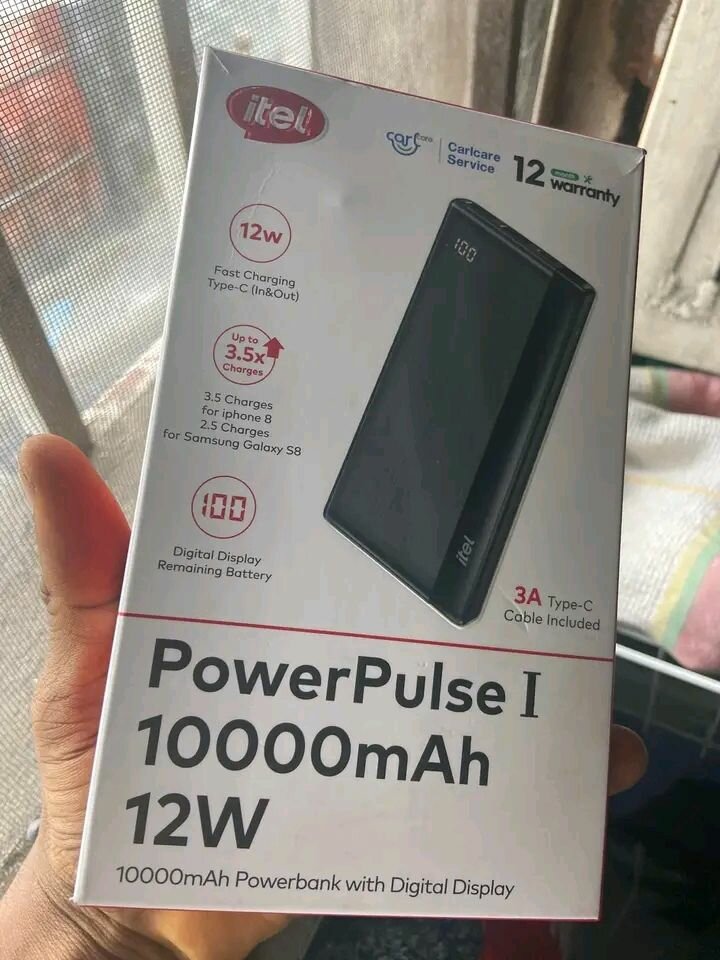 Profitez d'une recharge rapide et fiable avec ce powerbank Itel de 10000mAh. Doté d'affichage numérique pour la batterie restante et de ports multiples pour vos appareils. Idéal pour voyages et déplacements.