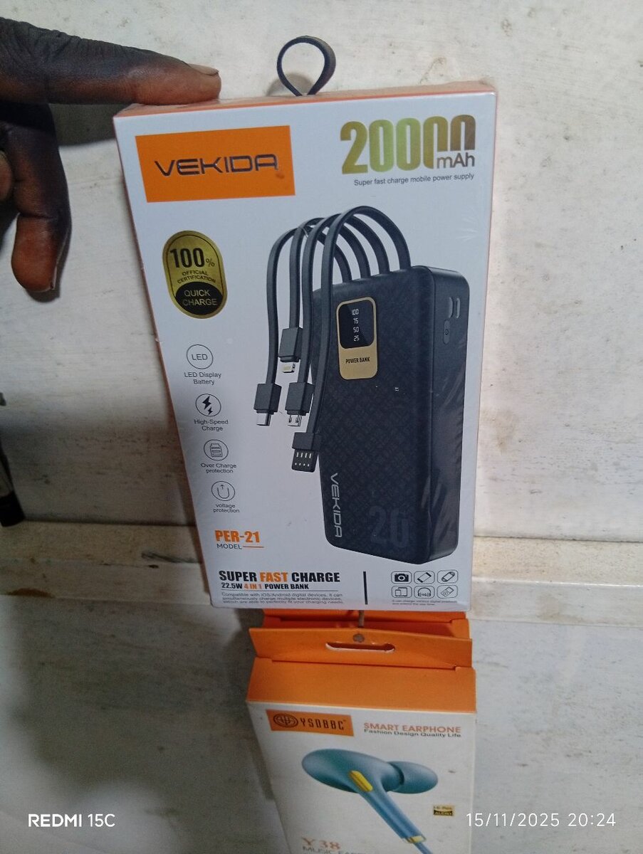 Optez pour le powerbank VEKIDA 20000mAh, idéal pour recharger rapidement tous vos appareils. Capacité élevée et multiprise intégrée pour un maximum de confort.