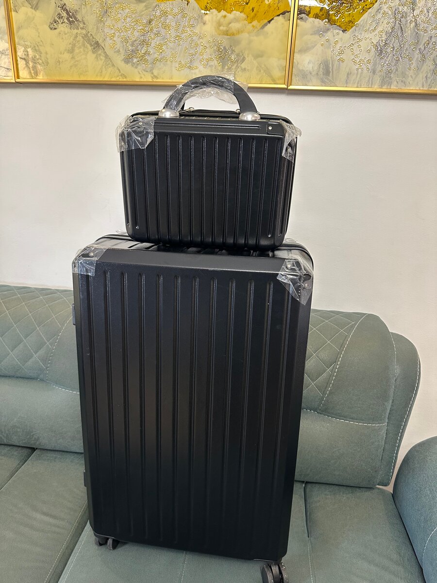 Travel in style with this sleek, durable luggage set. Includes a spacious rolling suitcase and a compact carry-on, both with a hard-shell design for maximum protection. Ideal for business trips or vacations. Lightweight and easy to maneuver.