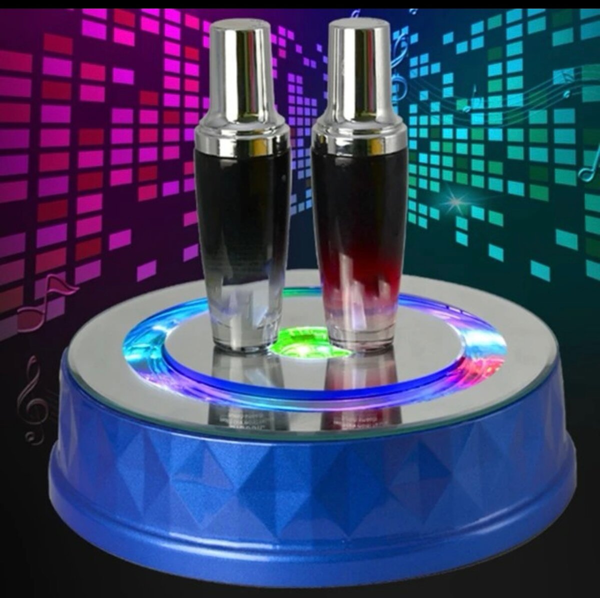 Le support rotatif avec LED colorée rend les bijoux plus beaux.