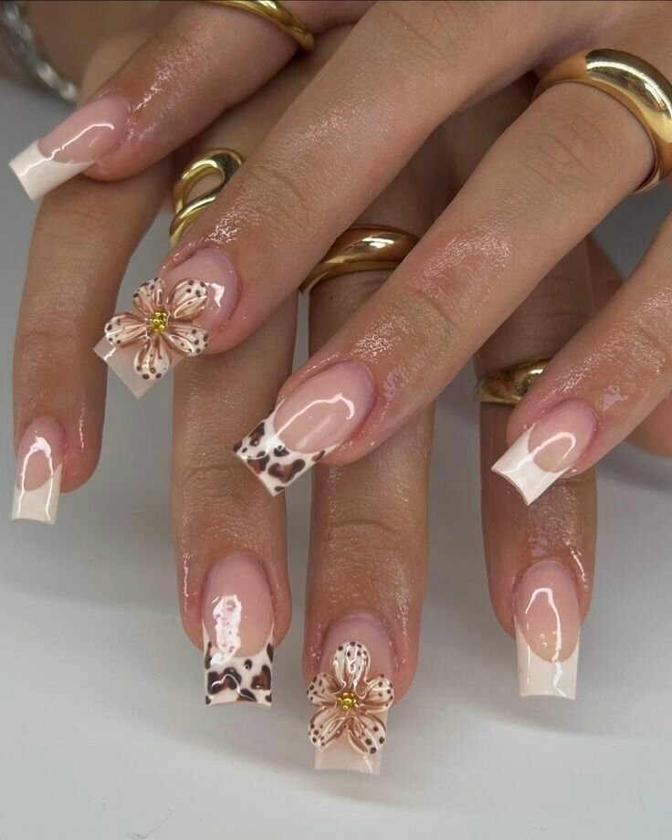 Découvrez l'élégance pure avec notre décoration d'ongles léopard ornée de fleurs sophistiquées.