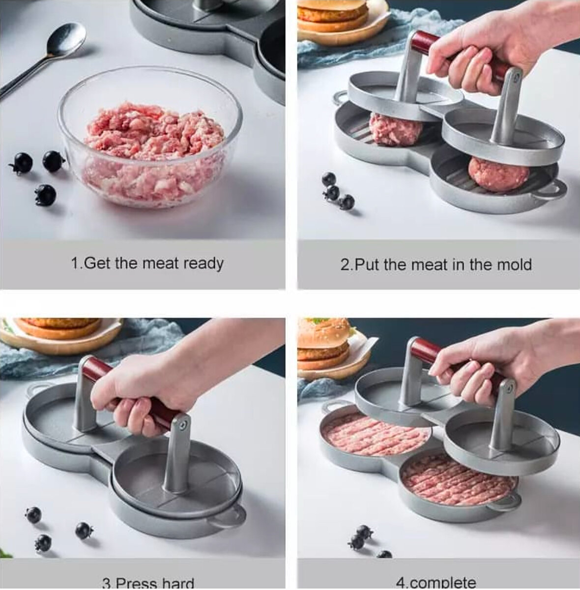Préparez des burgers parfaits avec notre presse double à burger, idéale pour des steaks uniformes et savoureux. Fabriquée en aluminium robuste avec une poignée ergonomique.