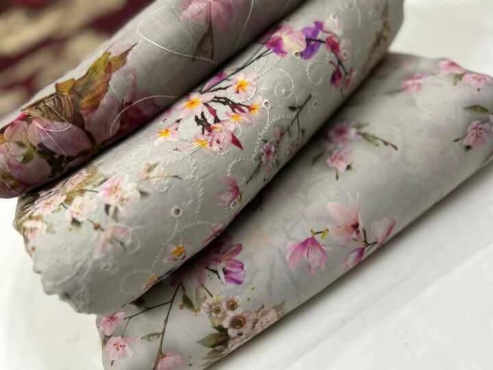 Digital Printed Lawn Suit With Chikencari Embroidery
