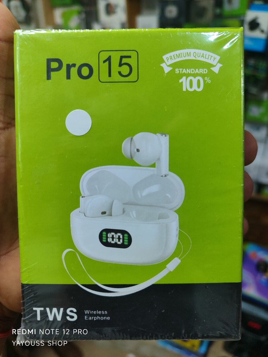 High-quality Pro 15 TWS earphones offer premium sound with true wireless technology. Perfect for music lovers on the go, enjoy crystal clear audio and long-lasting battery life.