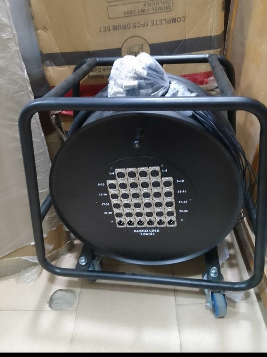 High-quality pro audio snake cable reel with 16 XLR connectors. Durable and portable, perfect for live sound applications and easy cable management. Ideal for musicians, sound engineers, and event organizers.