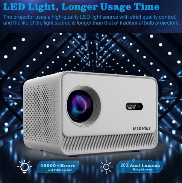 Projecteur vidéo M10 Plus, Android 11.0, prise en charge UHD, 4K, cinéma maison, mise au point automatique, touristes, WiFi, 4G, 5G, BT, 5.2, HDR TV Couleur : m10pluswhite