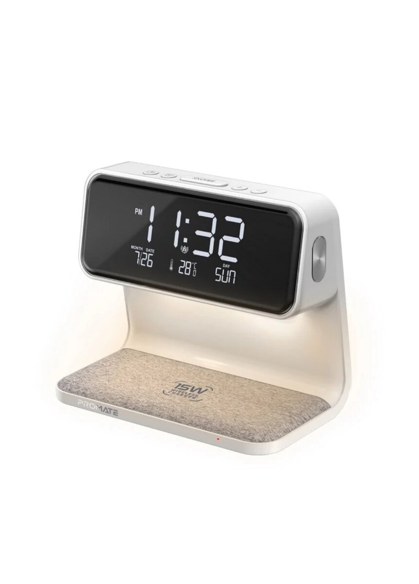 Lumix-15W combines convenience, elegance, and technology, featuring a 15W wireless charger and an alarm clock with an LED night light. Basic and easy to use, Lumix-15W digital clock supports 12-hour and 24-hour time clock displays along with time, date, and temperature displays. The LED night lamp with 3 modes lets you create the best soothing and relaxing ambiance. The elegant and sleek design adds a touch of style to your bedside table and the anti-slip wireless charging pad