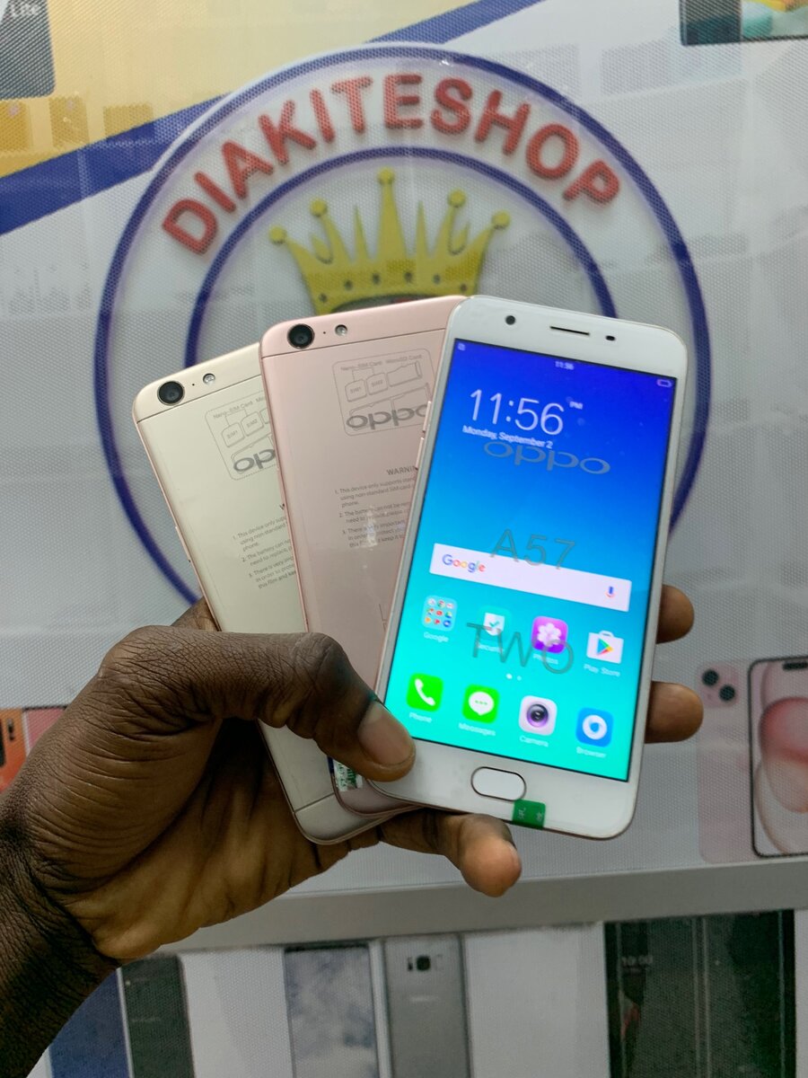 PROMO OPPO A57 ÉTAT QUASI NEUF STOCKAGE 64GB/4RAM BATTERIE SUPER DURABLE EMPREINTE & FACIAL ID NAVIGATION 4G/ Dual SIM FOURO OFFERT GARANTIE 1MOIS VENDU EN BOUTIQUE LIVRAISON À VOS FRAIS
