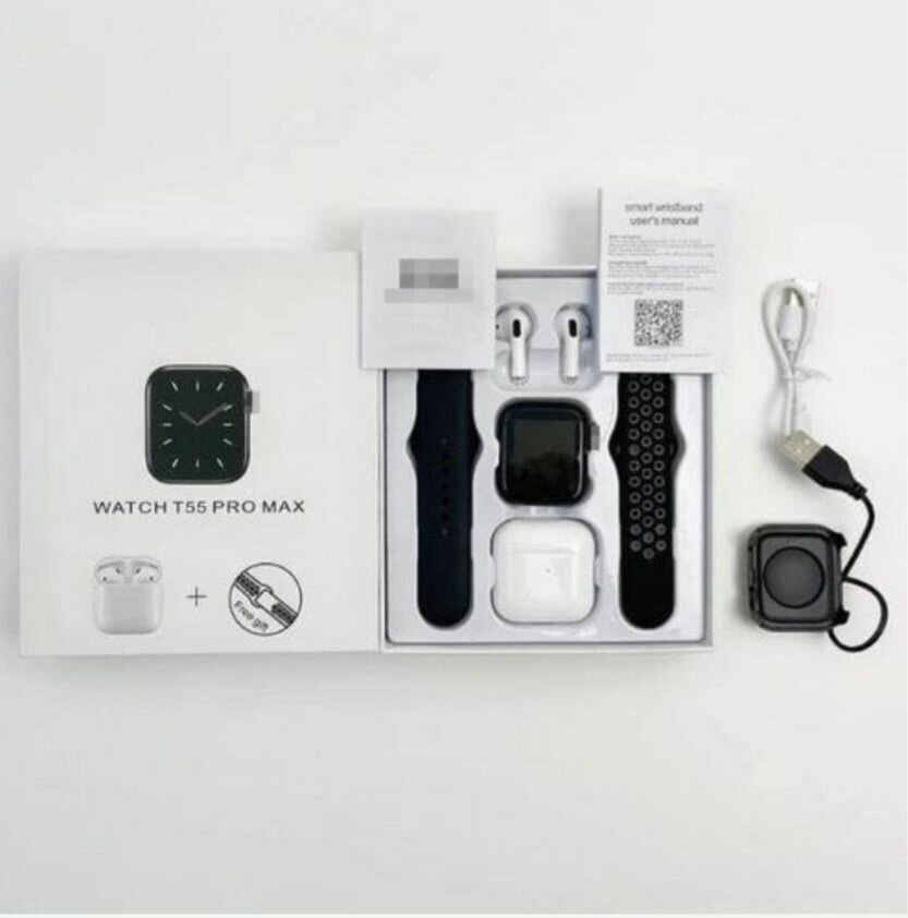 Smartwatch Montre Connectée T55 Pro Max, 2 En 1, Avec écouteurs - Blanc