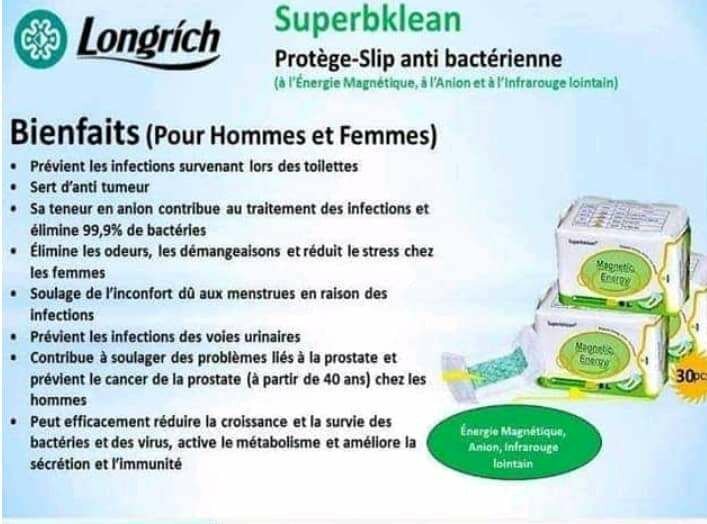 Découvrez le protège-slip antibactérien Longrich, idéal pour prévenir les infections et optimiser votre confort quotidien. Sa technologie avancée élimine 99,9% des bactéries tout en réduisant les odeurs et les démangeaisons. Parfait pour tous ceux qui recherchent une solution hygiénique et efficace. Idéal pour les hommes et femmes.