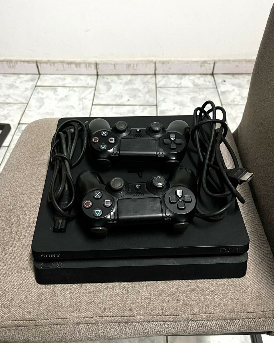 Ps4 slim avec deux manettes et un cd