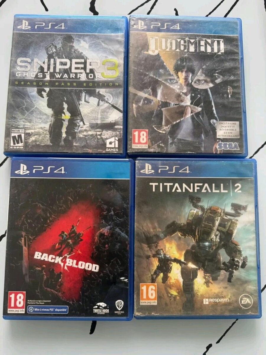 Explorez l'univers des jeux vidéo avec ce lot de jeux PS4 comprenant Sniper Ghost Warrior 3, Judgment, Back 4 Blood et Titanfall 2. Idéal pour les amateurs de tir et d'action, chaque jeu offre une expérience immersive unique. Boostez votre collection et vivez des aventures inoubliables sur votre console. Parfait pour des soirées gaming intenses à la maison !