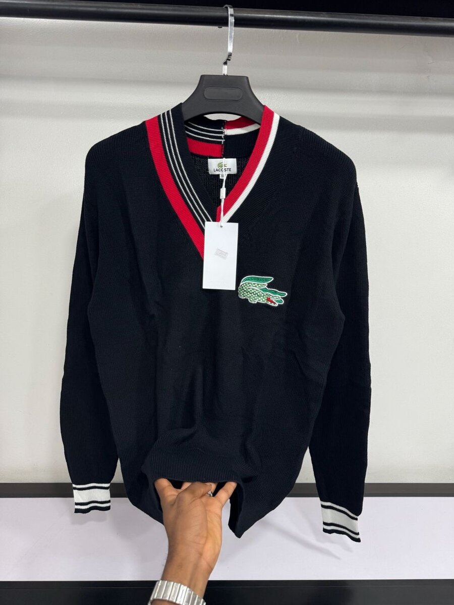 Optez pour ce pull col V noir avec des détails rayés rouges et blancs pour un style chic et décontracté. Idéal pour toutes les occasions, il offre confort et sophistication. Parfait pour vos tenues casual ou professionnelles, il deviendra un incontournable de votre garde-robe.