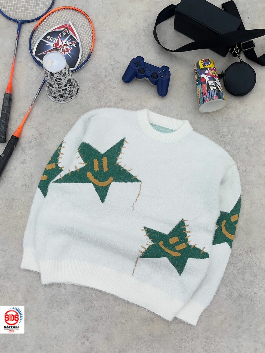 Découvrez ce pull douillet en laine avec des étoiles souriantes vertes, parfait pour rester au chaud avec style. Son design unique le rend idéal pour les sorties décontractées ou les moments de détente à la maison. Facile à porter, ce pull deviendra votre allié mode préféré !