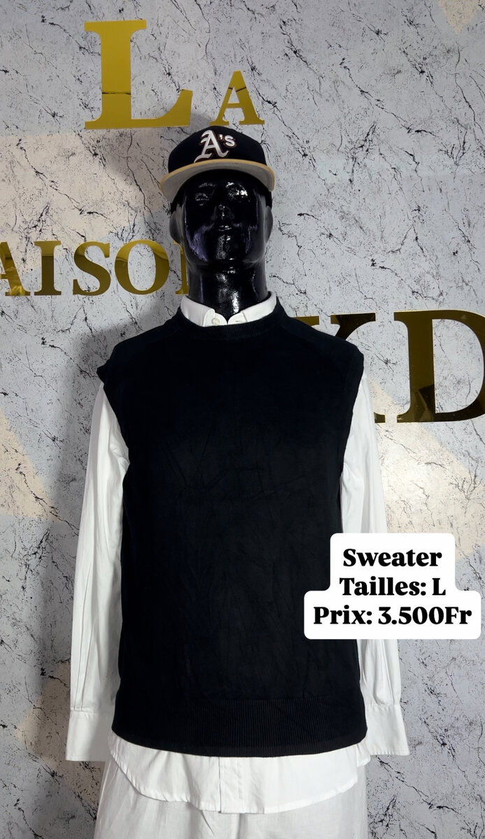 Ce pull sans manches noir pour homme est idéal pour un look chic et décontracté. Fabriqué en tissu de qualité, il est confortable et élégant. Parfait pour superposer sur une chemise ou un t-shirt.