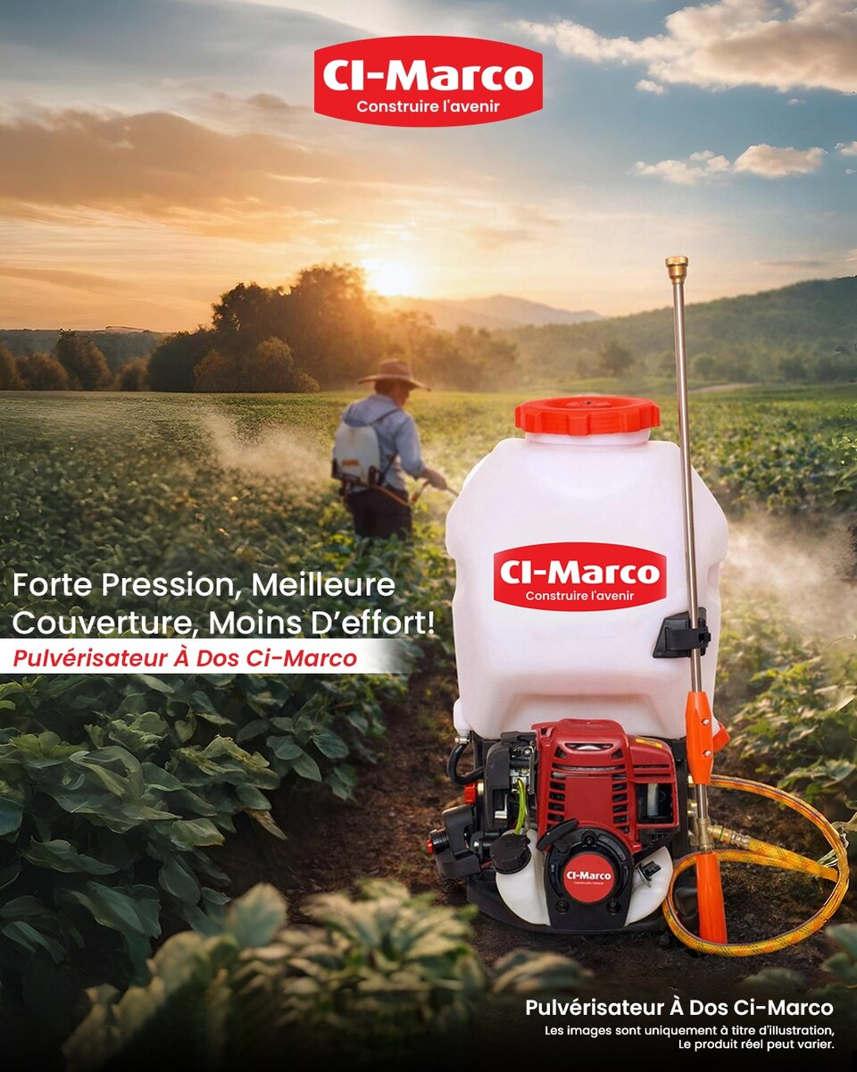 Augmentez votre efficacité avec le pulvérisateur à dos Ci-Marco. Idéal pour les grandes surfaces agricoles, il garantit une pression forte et une couverture optimale. Conçu pour le confort, il réduit l'effort grâce à sa capacité de 15L et son moteur puissant. Parfait pour les professionnels de l'agriculture à la recherche d'une solution durable et fiable.