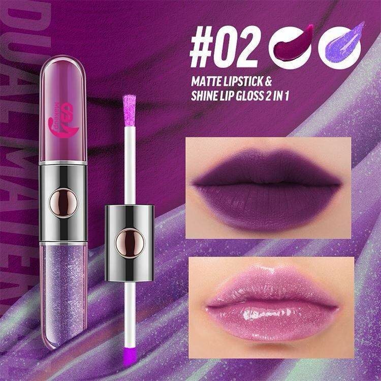 Elevate your look with this vibrant purple matte lipstick paired with a glossy finish. Perfect for any occasion, this dual-function lip duo offers a bold statement with its long-lasting formula. Ideal for those who love a splash of color and shine, making it a must-have for your beauty collection.