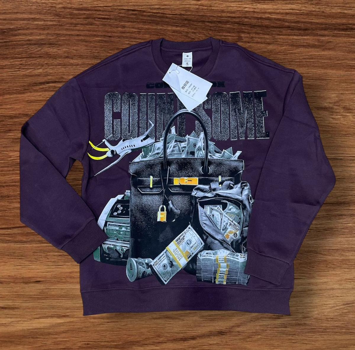 purple sweatshirt with print