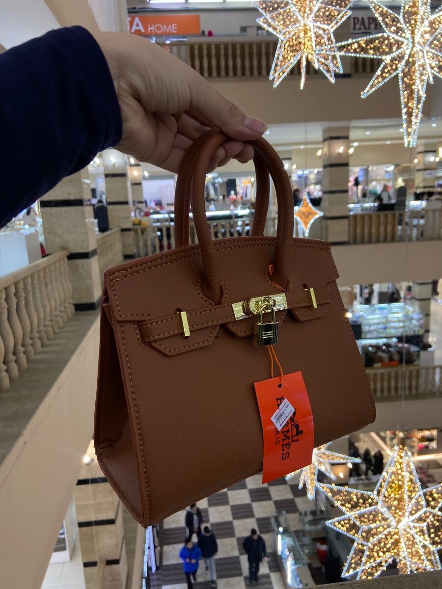 На фото изображена элегантная черная сумка небольшого размера, выполненная в классическом стиле, напоминающем дизайн культовой сумки Hermès Birkin.