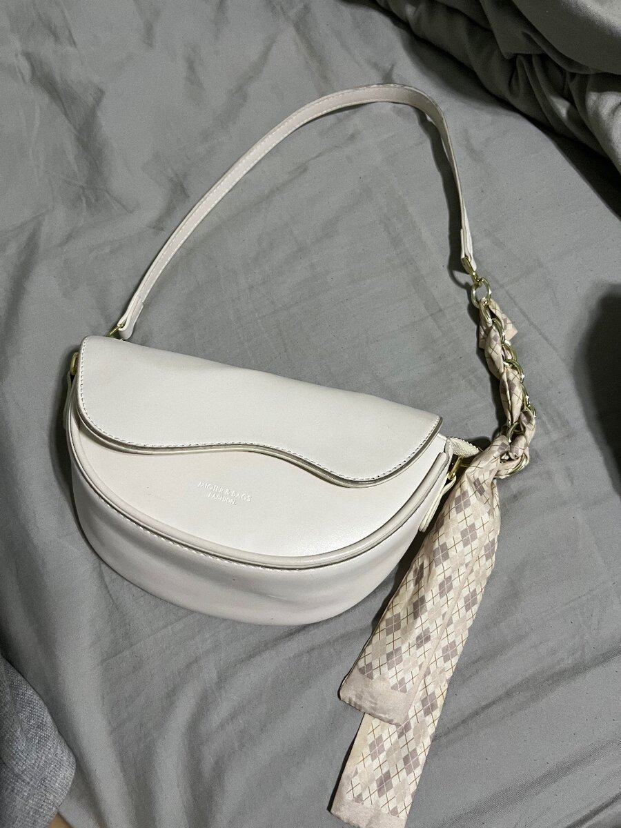 Сумка среднего размера,идет вместе с ленточкой,есть небольшая неровность на сумке поэтому по такой цене