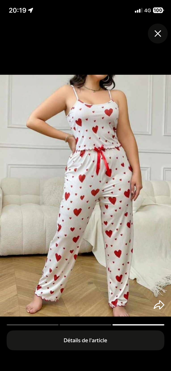 Découvrez le confort ultime avec ce pyjama orné de cœurs rouges. Confectionné dans un tissu doux, il offre une coupe ample parfaite pour des nuits paisibles. Un choix idéal pour celles qui recherchent style et confort à la maison.