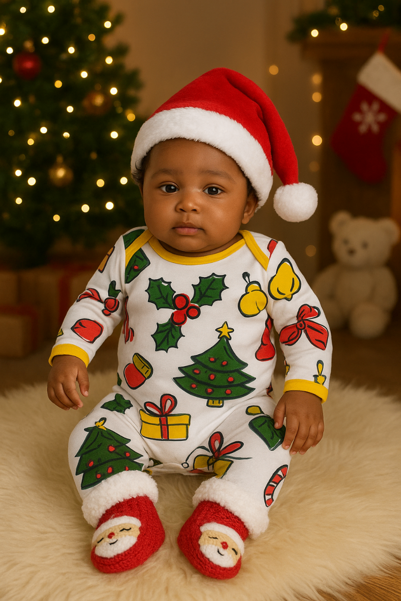Amenez la magie de Noël avec ce pyjama adorable pour bébé. Fabriqué en coton doux pour garder votre petit confortable pendant les fêtes. Avec des motifs festifs de bonhommes de neige et Pères Noël, c’est un choix parfait pour les photos de famille ou les soirées autour du sapin. Un cadeau idéal pour un premier Noël inoubliable et plein de joie.