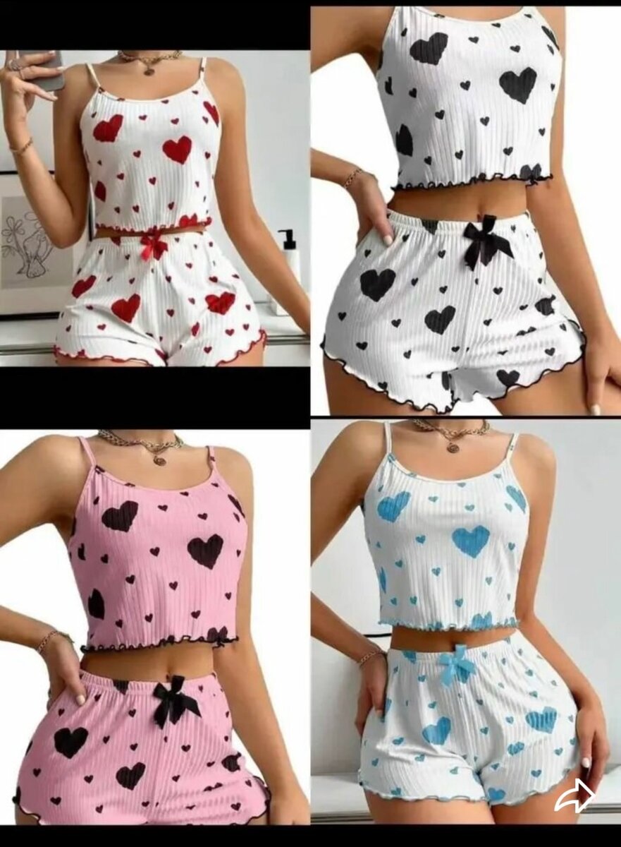 Adorable ensemble de pyjama court avec motifs cœur, idéal pour des nuits confortables et élégantes. Fabriqué à partir de tissu doux et respirant, parfait pour l'été. Disponible en plusieurs couleurs. Un choix idéal pour un sommeil chic et confortable.
