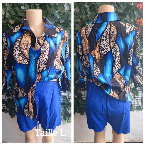 Pyjama d'été Bleu Imprimé