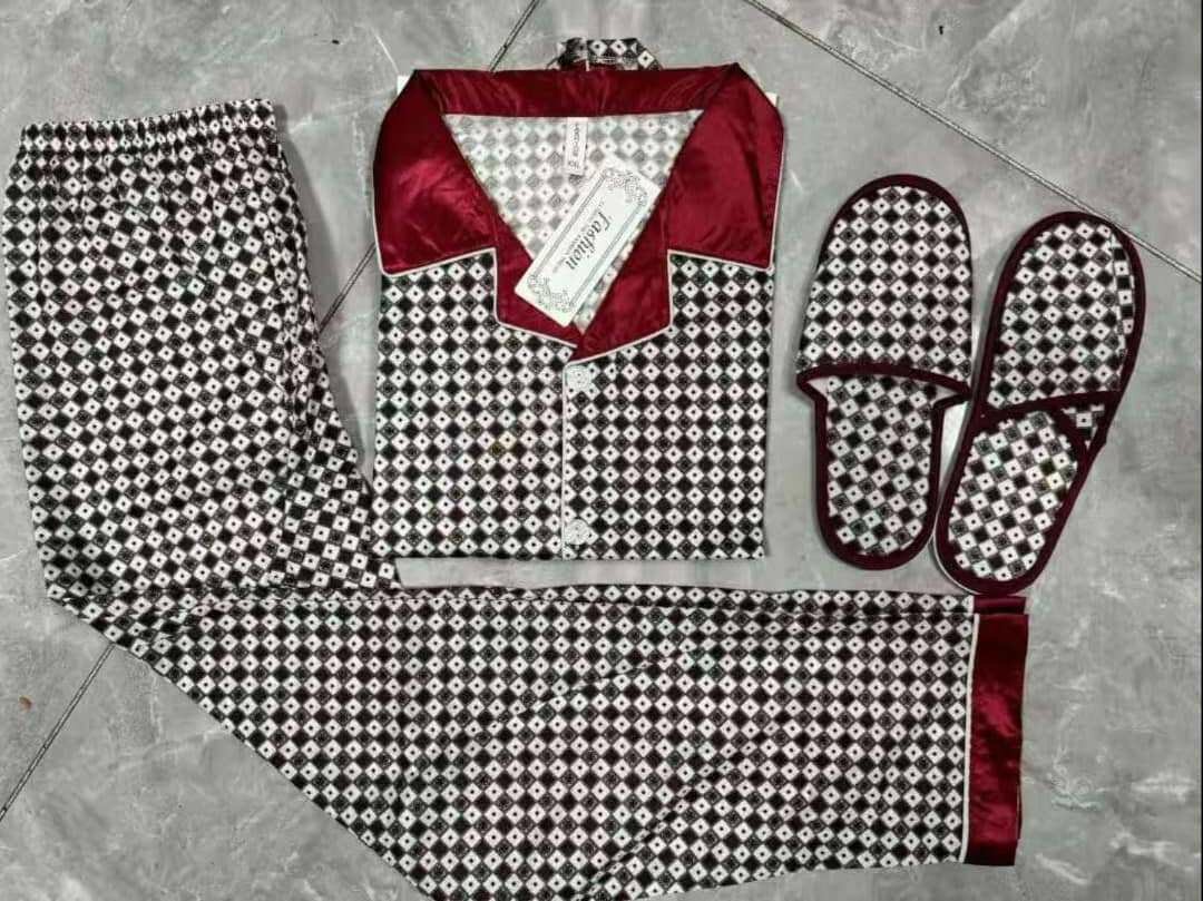 Découvrez un ensemble pyjama en satin raffiné avec ses chaussons assortis, conçu pour un confort ultime et un style chic. Idéal pour se détendre chez soi tout en restant élégant.