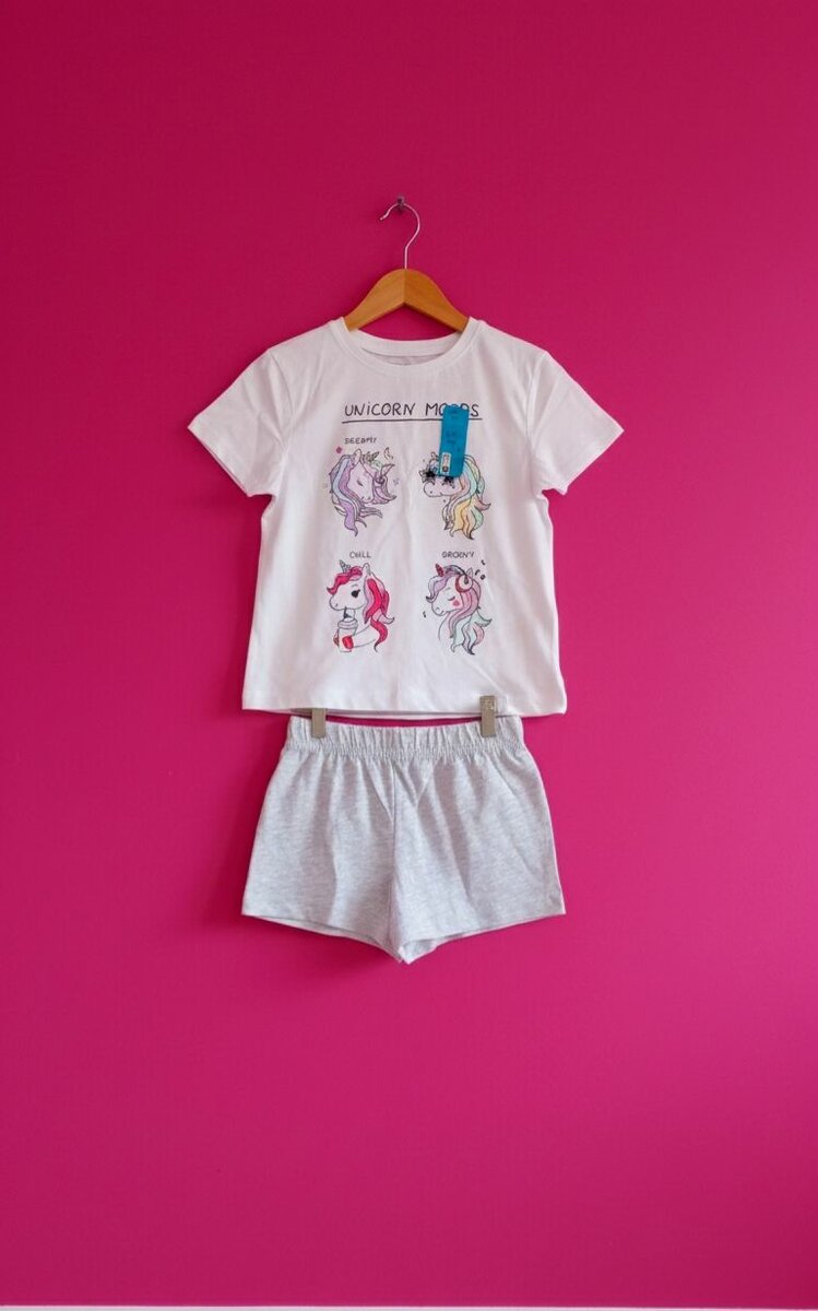 Pyjama enfant confortable avec motif licorne. Parfait pour une nuit paisible avec style. T-shirt doux et short léger, idéal pour dormir ou se détendre à la maison. Un choix amusant pour les petits amateurs de licornes!