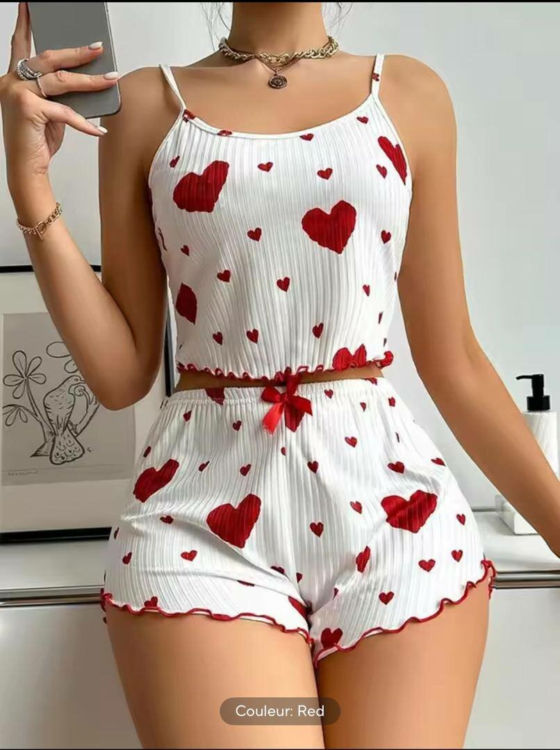 Ce pyjama femme doux et confortable avec motifs de cœur est parfait pour des nuits paisibles. Fabriqué avec des matériaux de haute qualité, il est respirant et idéal pour un usage quotidien. Disponible en plusieurs couleurs attrayantes, ce pyjama ajoute une touche de gaieté à votre garde-robe de nuit. Parfait pour se détendre à la maison ou comme cadeau pour vos proches.