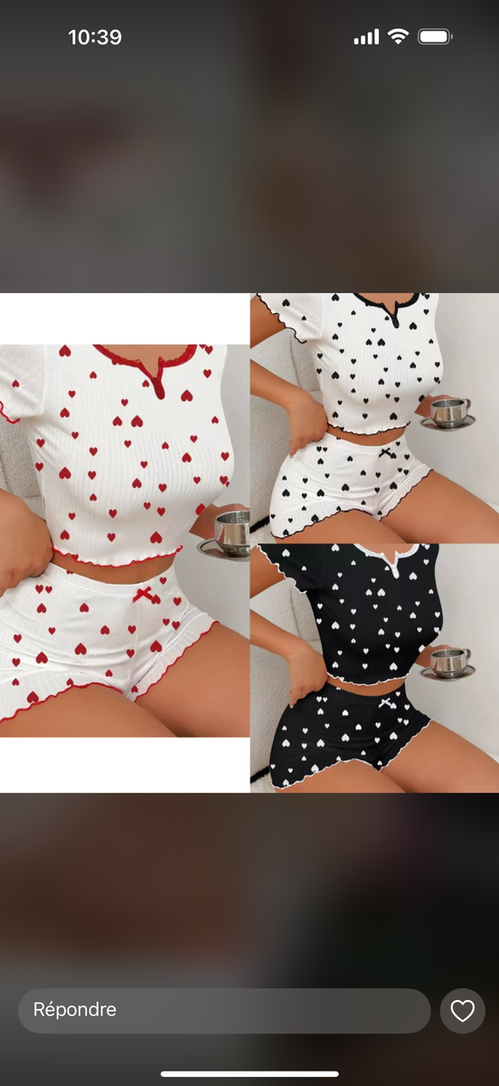 Optez pour ce pyjama confortable et élégant à motif cœur. Parfait pour des nuits douces, il offre une coupe légère et un style moderne. Idéal pour la détente à la maison.