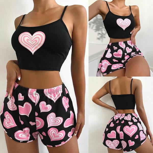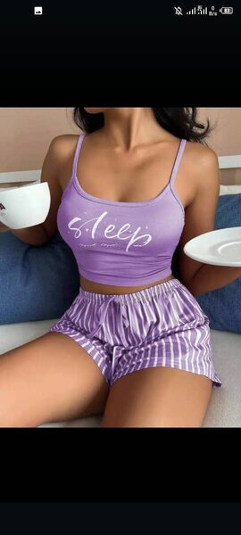 Ensemble de pyjama pour femme, parfait pour des nuits confortables et stylées. Haut léger avec inscription "Sleep" et short rayé. Idéal pour se détendre à la maison.