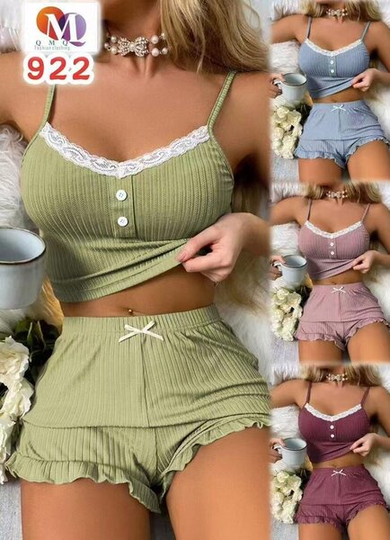 Ensemble pyjama élégant pour femme avec détails en dentelle. Confortable et idéal pour des nuits douces. Disponible en plusieurs couleurs vibrantes pour convenir à tous les styles. Parfait pour un usage quotidien ou pour offrir en cadeau.