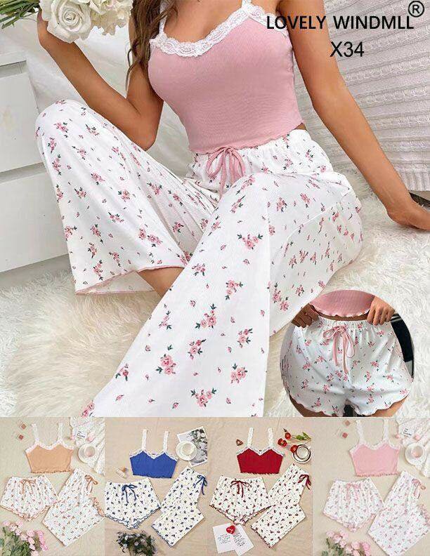 Pyjama femme été en coton, confortable et léger. Taille élastique pour un ajustement parfait. Disponible en plusieurs tailles et motifs fleuris pour un look féminin et élégant.