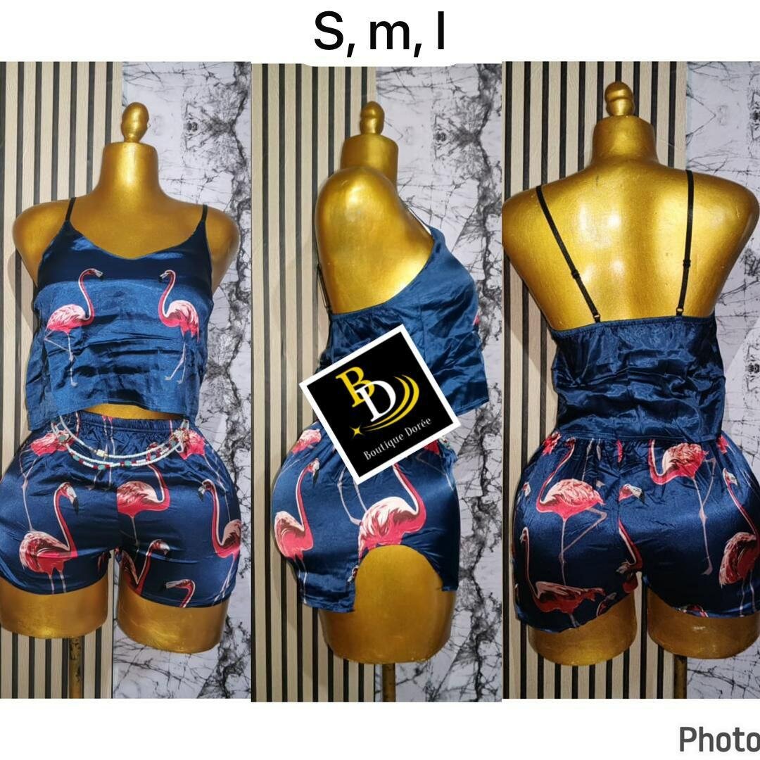 Découvrez notre ensemble de pyjama en satin avec motifs flamants roses. Doux et confortable, idéal pour une nuit paisible. Disponible en tailles S, M et L. Un choix parfait pour allier style et confort chez vous.