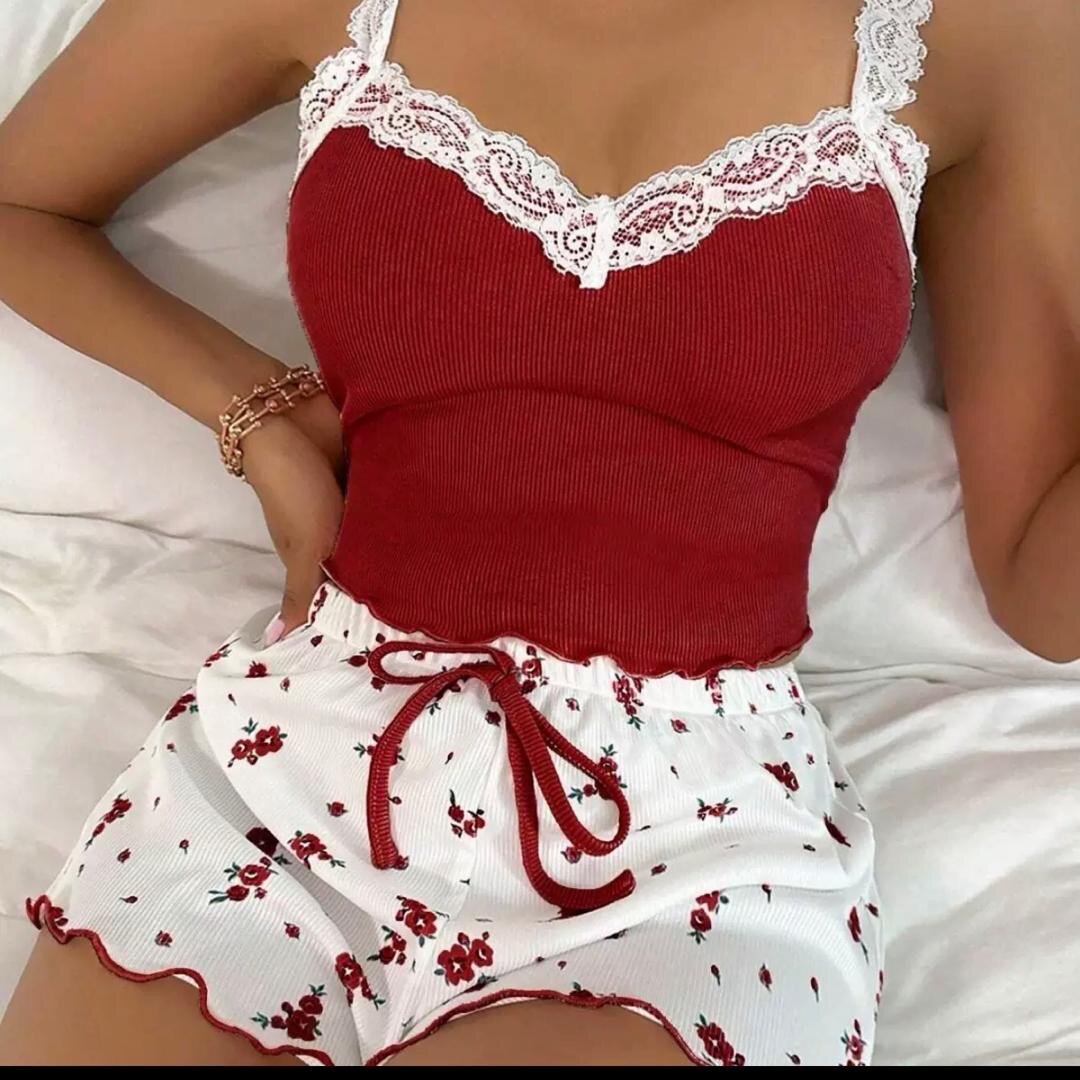 Découvrez ce magnifique pyjama pour femme, alliant élégance et confort. Avec son haut rouge dentelle et son short floral, il est idéal pour des nuits paisibles et un style raffiné à la maison. Fabriqué avec des matériaux doux, il assure une sensation agréable sur la peau. Parfait pour les soirées détendues à la maison ou comme cadeau élégant.