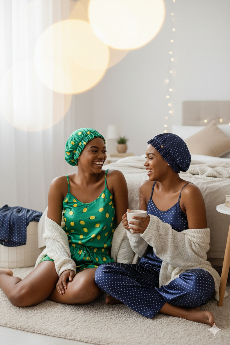3 en 1 l'ensemble composé d'une culotte,d'un haut et d'un bonnet idéal pour l'été. Disponible en motifs colorés et joyeux qui ajoutent une touche de fun à votre garde-robe de nuit.