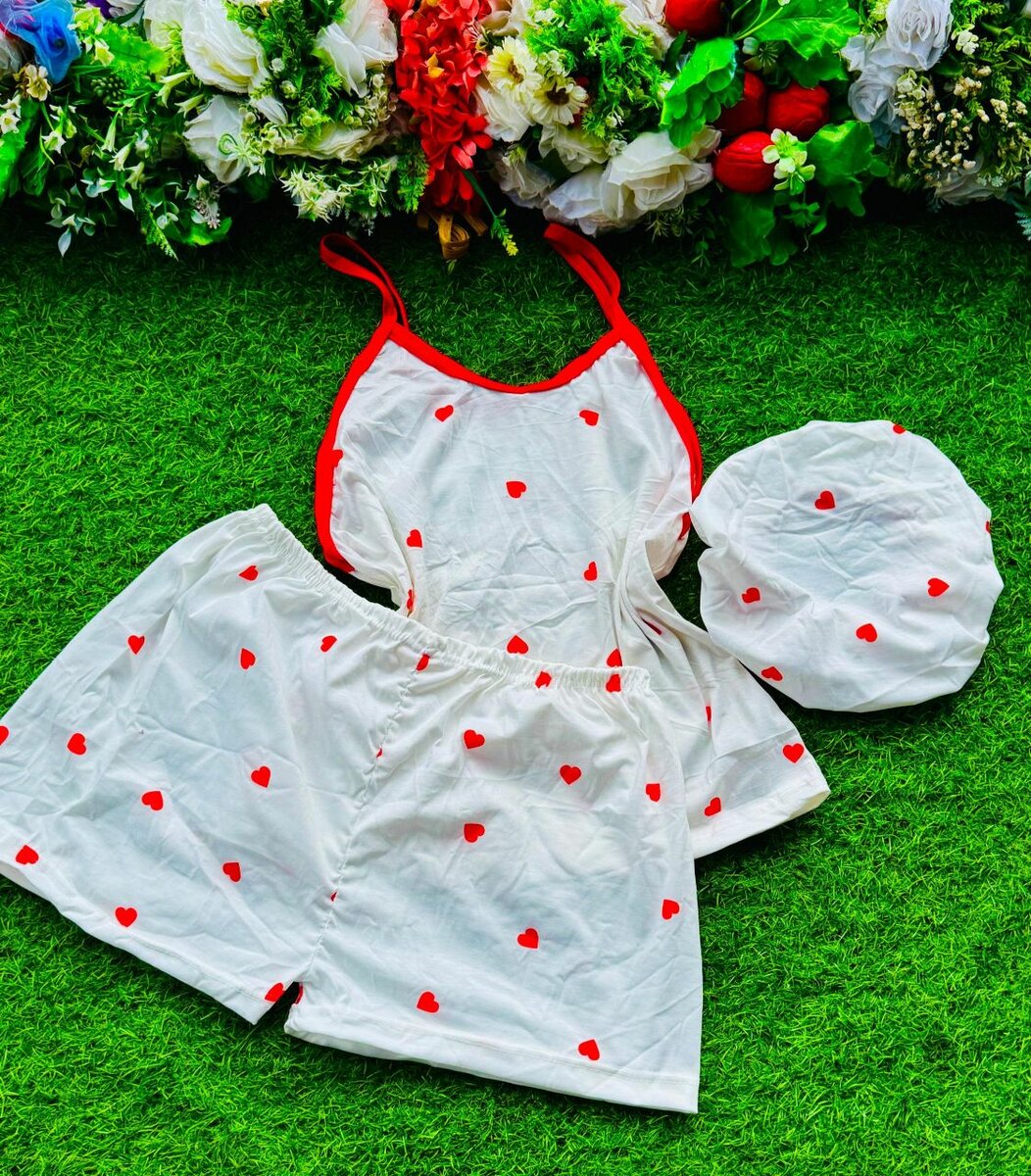 Ensemble de pyjama léger et confortable, idéal pour des nuits paisibles. Fabriqué en coton doux avec des motifs floraux élégants, cette tenue est parfaite pour se détendre à la maison. Comprend un short, un débardeur et un bonnet assorti, offrant un confort ultime. Idéal pour les soirées d'été, les voyages ou comme cadeau.
