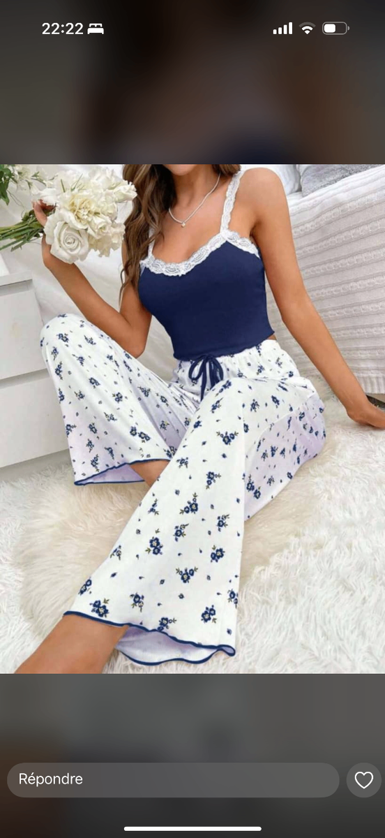 Optez pour ce pyjama floral élégant et confortable. Parfait pour des nuits douces, ses matériaux légers garantissent un confort optimal. Idéal pour les soirées cocooning ou comme cadeau charmant. Ajoutez une touche de style à votre routine nocturne avec ce pyjama tendance.