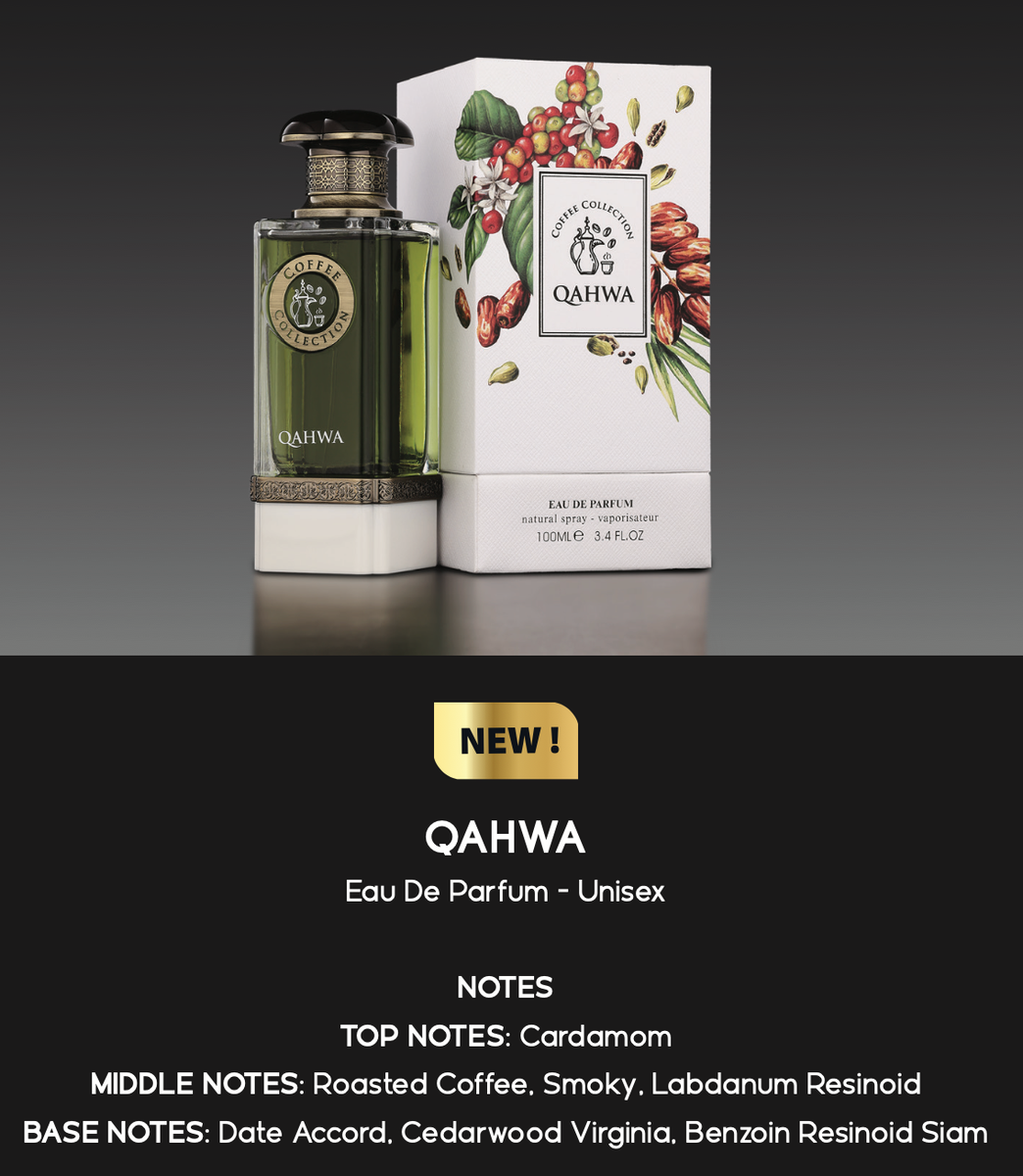 Découvrez QAHWA, un parfum unisexe unique avec des notes envoûtantes de cardamome et de café torréfié. Parfait pour ceux qui recherchent une fragrance distinctive et sophistiquée. Idéal pour toutes occasions.