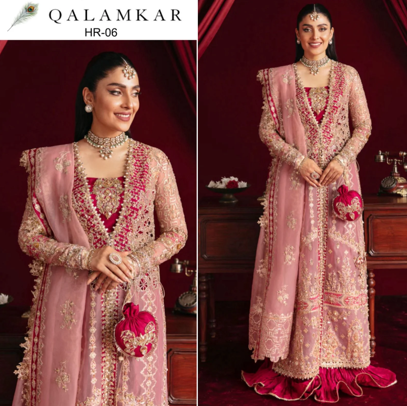 The Qalamkar - Hr06 in a stunning pink with red combination is the perfect addition to your wardrobe. Made with high-quality materials, this garment is sure to provide comfort and style. With its unique design, it's a must-have for any fashion-forward individual. Upgrade your style with Qalamkar.