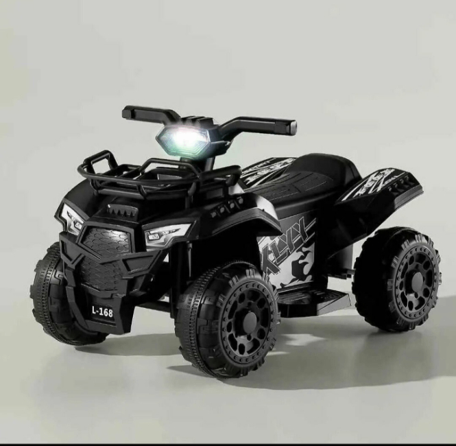 Quad électrique pour enfants, modèle L-168, couleur noir. Conçu pour les petits aventuriers, ce quad est équipé de lumières LED et d'une prise en main facile. Idéal pour les enfants qui aiment l'aventure et les véhicules tout-terrain.
