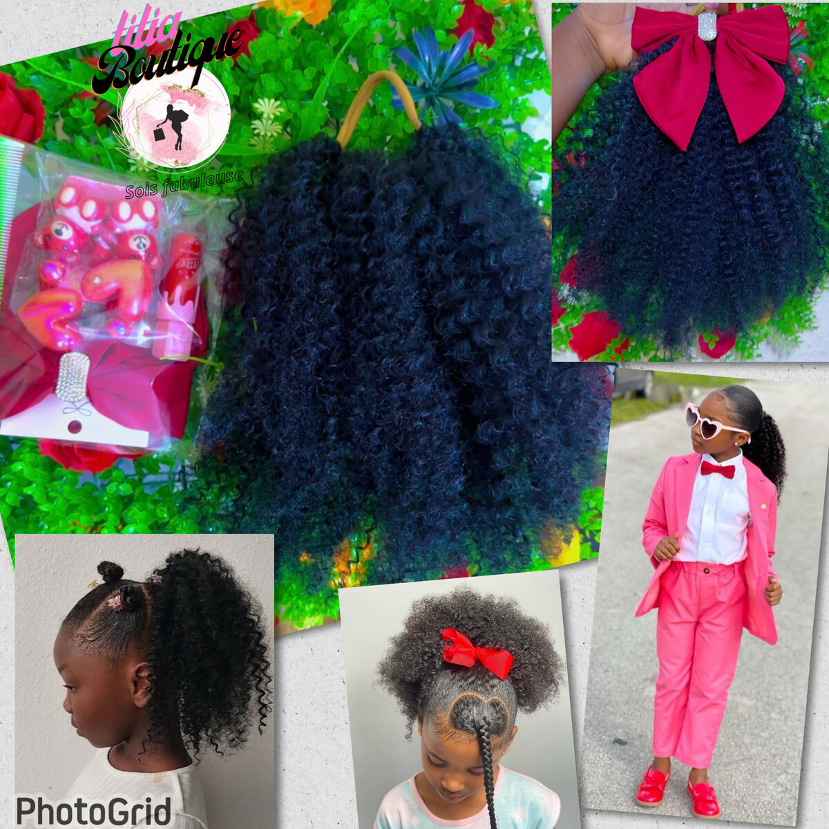 Ajoutez une touche adorable aux coiffures de votre enfant avec cette queue de cheval bouclée. Facile à attacher, elle offre un style volumineux et charmant. Parfaite pour les fêtes ou les tenues quotidiennes, elle redéfinit le chic enfantin avec son grand nœud inclus. Un must-have pour les petites fashionistas!