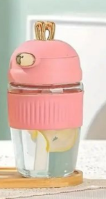 Portable Bunny Ear Flip Top Straw Glass Tumbler with Silicone Sleeve