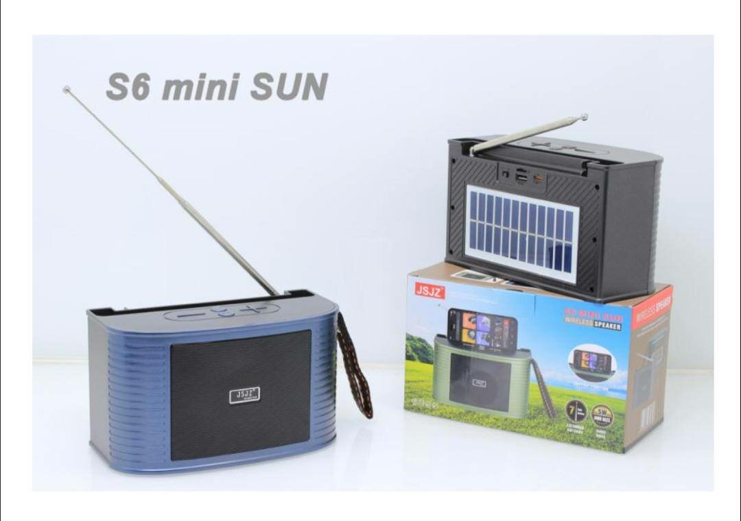 Découvrez la radio portable S6 Mini SUN avec charge solaire intégrée. Parfait pour les voyages et activités extérieures. Profitez d'un son clair et d'une longue autonomie grâce à l'énergie solaire. Idéal pour les amateurs de plein air et de musique en déplacement.