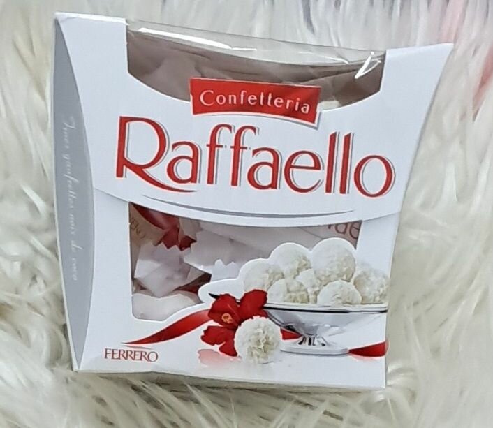 Découvrez Raffaello de Ferrero, une délicieuse confiserie italienne. Confit de crème de noix de coco et d'amande, enveloppé de papier fine. Parfait pour les amateurs de douceurs.